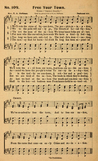 Display Title: Free Your TownFirst Line: We'll vote the curse of liquor downTune Title: YANKEE DOODLEAuthor: Rev. E. A. HoffmanDate: 1916Subject: Temperance |