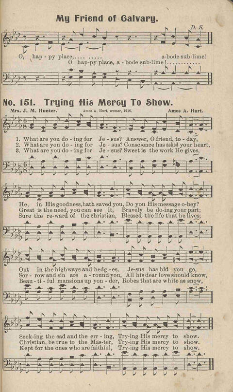 Display Title: Trying His Mercy to ShowFirst Line: What are you doing for Jesus?Tune Title: [What are you doing for Jesus?]Author: Mrs. J. M. HunterDate: 1916