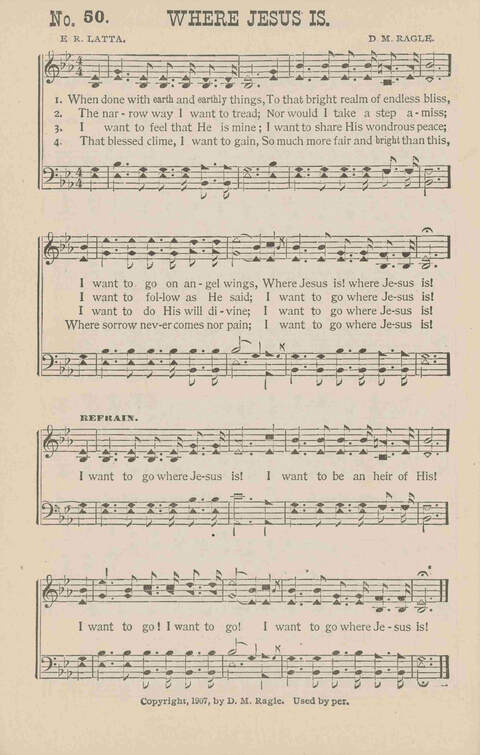 Rv Eden Reeder Latta USA 1839-1915. Born at Haw Patch, IN, the son of a Methodist minister, (also a boyhood friend of hymn writer Willam A Ogden) he became a school teacher. During the American Civil War he preached for the Manchester Methodist Church and other congregations (possibly as a circuit rider filling empty pulpits). In 1863 he married Mary Elizabeth Wright, and they had five children: Arthur, Robert, Jennie, two others. He taught for the public schools of Manchester, and later Colesburg, IA. He moved to Guttenberg, IA, in the 1890s, and continued writing song lyrics for several major gospel composers, including William Ogden, James McGranahan, James Fillmore, and Edmund Lorenz. He wrote 1600+ songs and hymns, many being wi…