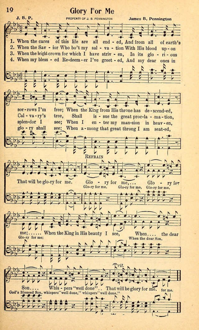 Display Title: Glory for MeFirst Line: When the cares of this life are all endedTune Title: [When the cares of this life are all ended]Author: J. B. P.Date: 1922