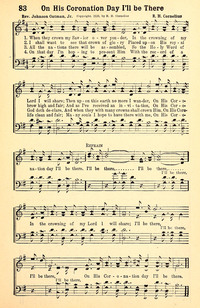 Display Title: On His Coronation Day I'll be ThereFirst Line: When they crown my Savior over yonderTune Title: [When they crown my Savior over yonder]Author: Rev. Johnson Oatman, Jr.Date: 1924