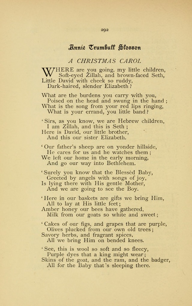 Display Title: A Christmas Carol First Line: Where are you going, my little children Author: Annie Trumbull Slosson Date: 1896