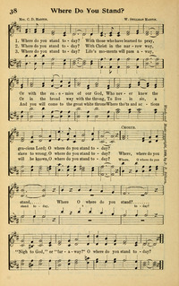 Martin, Civilla Durfee (Jordan Falls, Nova Scotia, August 21, 1866--March 9, 1948, Atlanta, Georgia). Daughter of James N. and Irene (Harding) Holden. She married Rev. John F. Geddes, Congregational minister of Coventryvilee, N.Y. at Jordan Falls Methodist Church, Shelbourne Co., Nova Scotia, on May 19, 1891. There is thus far no information about their marriage and its end. After several years of teaching school, she married Walter Stillman Martin, a Baptist minister, and traveled with him in evangelistic work. However, because of frail health, she was compelled to remain home much of the time. In 1916, they became members of the Christian Church (Disciples of Christ). They had one son, A.G. Martin. In her writing, she used only her initia… Go to person page >