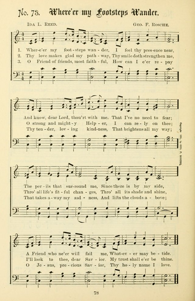 Display Title: Where'er my Footsteps WanderFirst Line: Where'er my footsteps wanderTune Title: [Where'er my footsteps wander]Author: Ida L. ReedDate: 1891