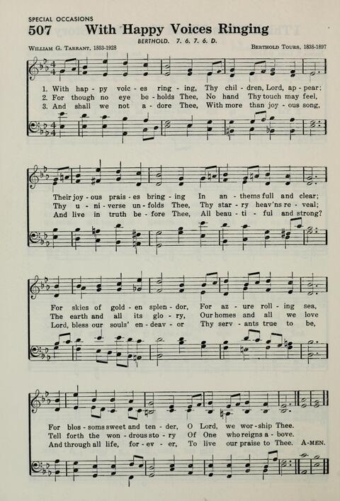 1 With happy voices ringing,