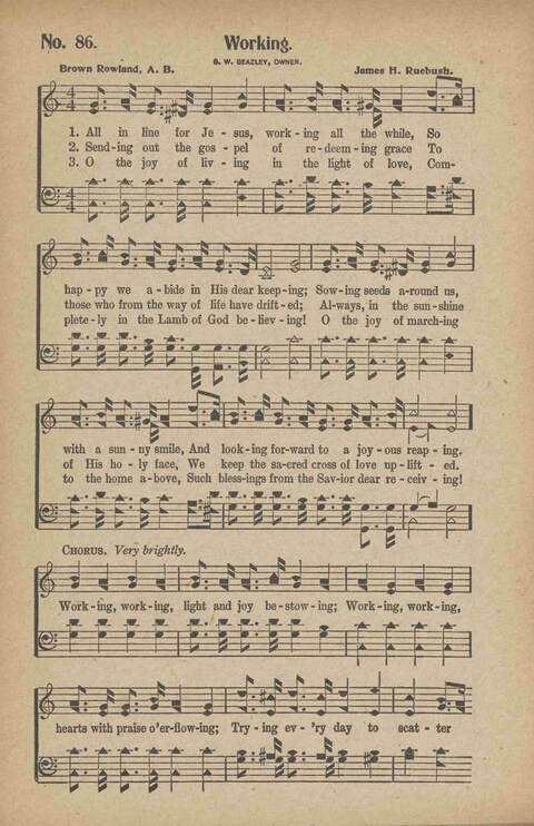 Tune Title: [All in line for Jesus, working all the while]First Line: All in line for Jesus, working all the whileComposer: James H. RuebushIncipit: 56545 16765 62171Date: 1918
