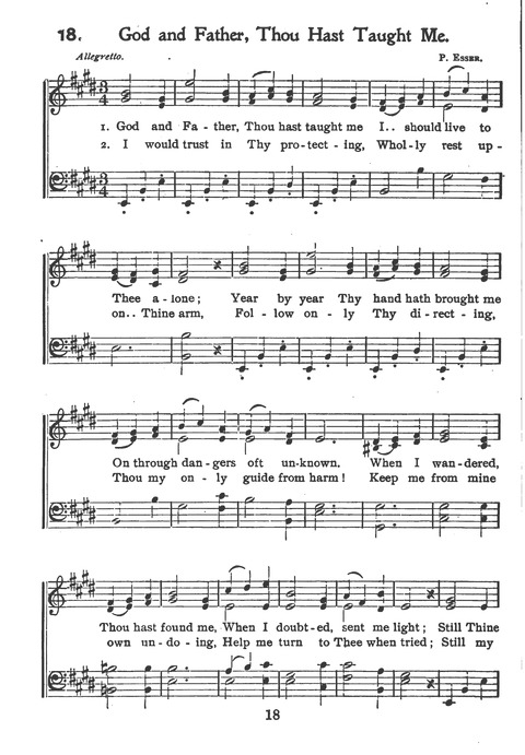 Tune Title: [God and Father, Thou hast taught me] First Line: God and Father, Thou hast taught me Composer: P. Esser Incipit: 53154 65432 34 Key: E Major Date: 1917