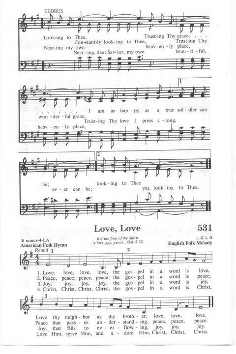 Tune Title: [Love, love, love, love, the gospel in a word is love]First Line: Love, love, love, love, the gospel in a word is loveKey: e minorDate: 1987Source: English Folk Melody