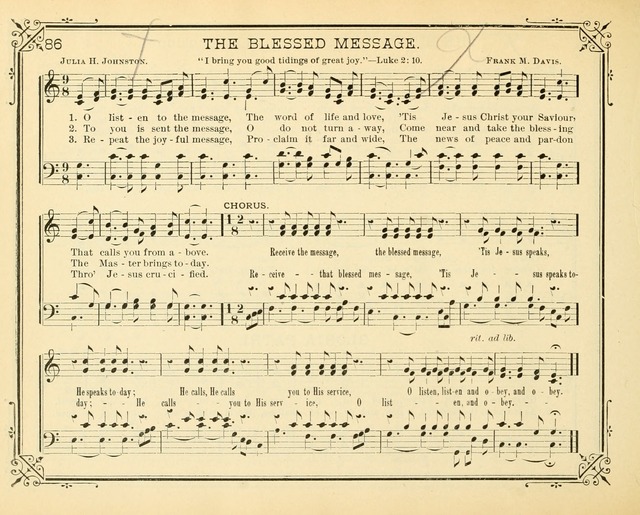Frank Marion Davis USA 1839-1896. Born at Marcellus, NY, he became a teacher and professor of voice, a choirmaster and a good singer. He traveled extensively, living in Marcellus, NY, Vicksburg, MS, Baltimore, MD, Cincinnati, OH, Burr Oak and Findley, MI. He compiled and published several song books: “New Pearls of Song” (1877), “Notes of Praise” (1890), “Crown of gold” (1892), “Always welcome” (1881), “Songs of love and praise #5” (1898), “Notes of praise”, and “Brightest glory”. He never married. John Perry Go to person page >