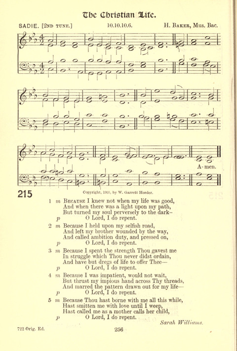 Tune Title: SADIEFirst Line: Because I knew not when my life was goodComposer: H. Baker, Mus. Bac.Meter: 10.10.10.6.Incipit: 43251 12712 34652Date: 1905