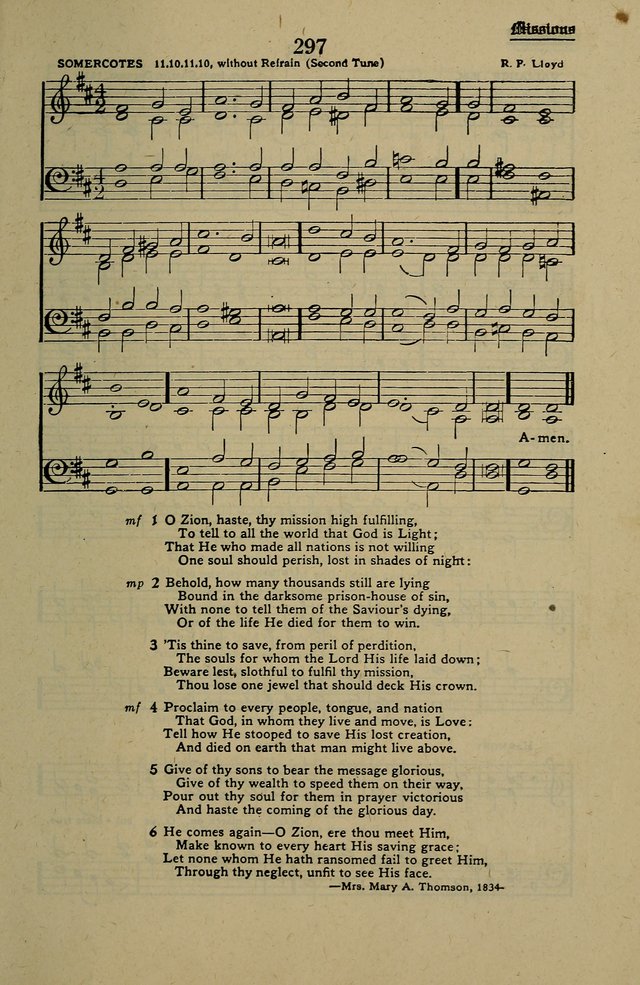 Tune Title: SOMERCOTESFirst Line: O Zion, haste, thy mission high fulfillingComposer: R. F. LloydMeter: 11.10.11.10 without RefrainKey: D MajorDate: 1917
