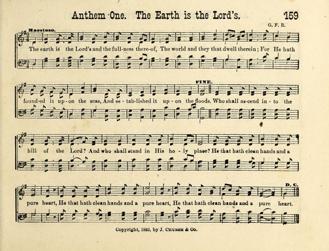 Tune Title: [The earth is the Lord's and the fullness thereof]First Line: The earth is the Lord's and the fullness thereofComposer: G. F. R.Incipit: 51123 13321 71122Date: 1883