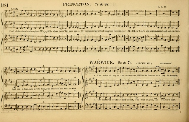 The American Vocalist: a selection of tunes, anthems, sentences, and hymns, old and new: designed for the church, the vestry, or the parlor; adapted to every variety of metre in common use. (Rev. ed.) (1849), p.184