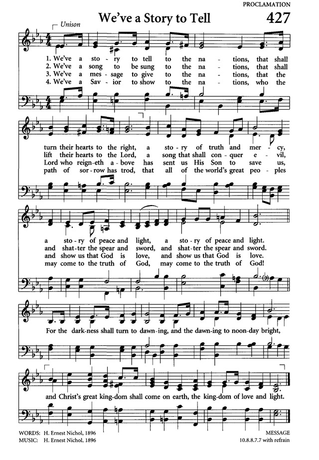 1 We've a story to tell to the nations,