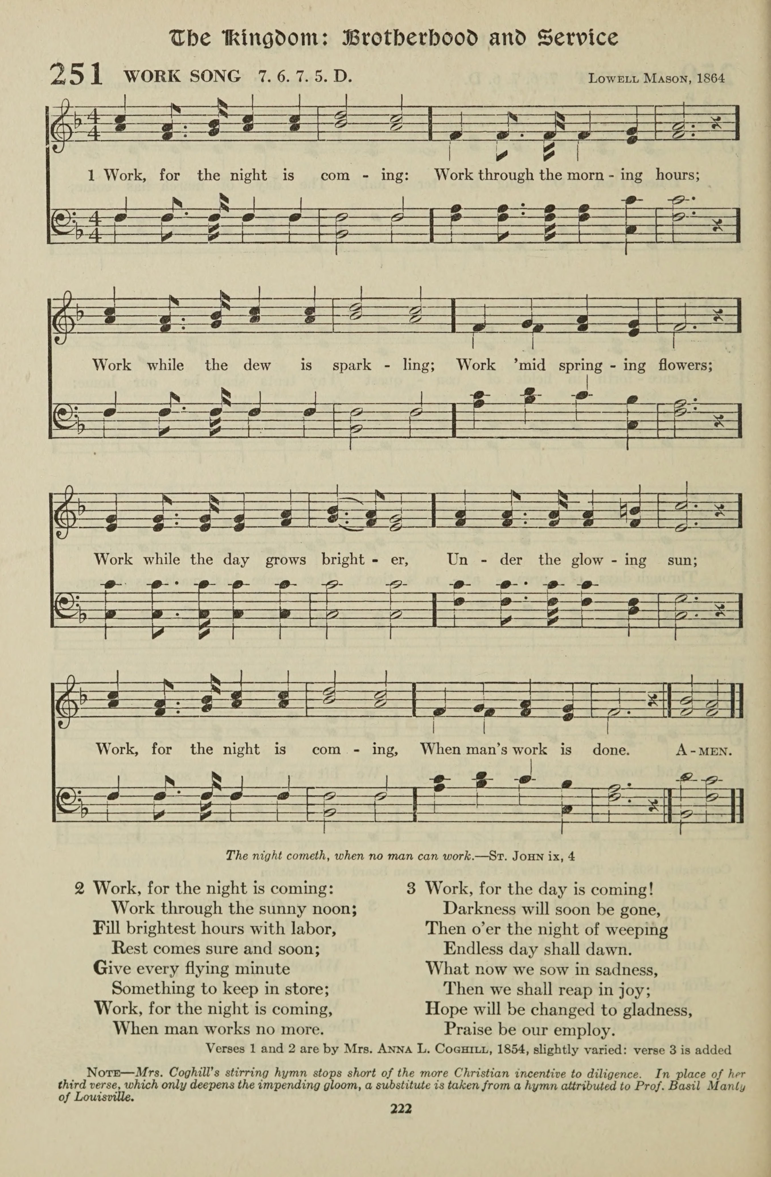 Work, for the night is coming