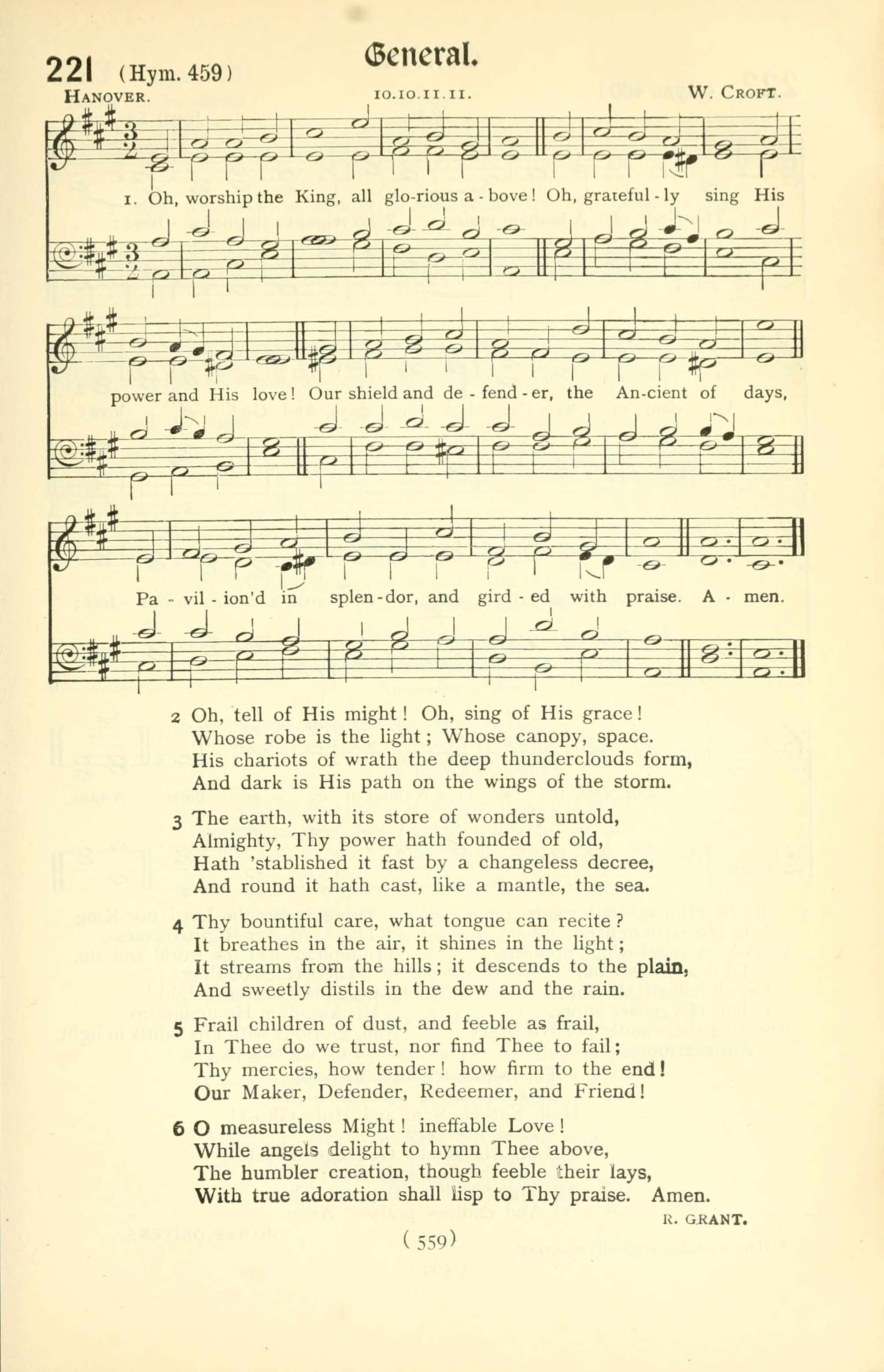 Oh, worship the King, all glorious above! Oh, gratefully sing His