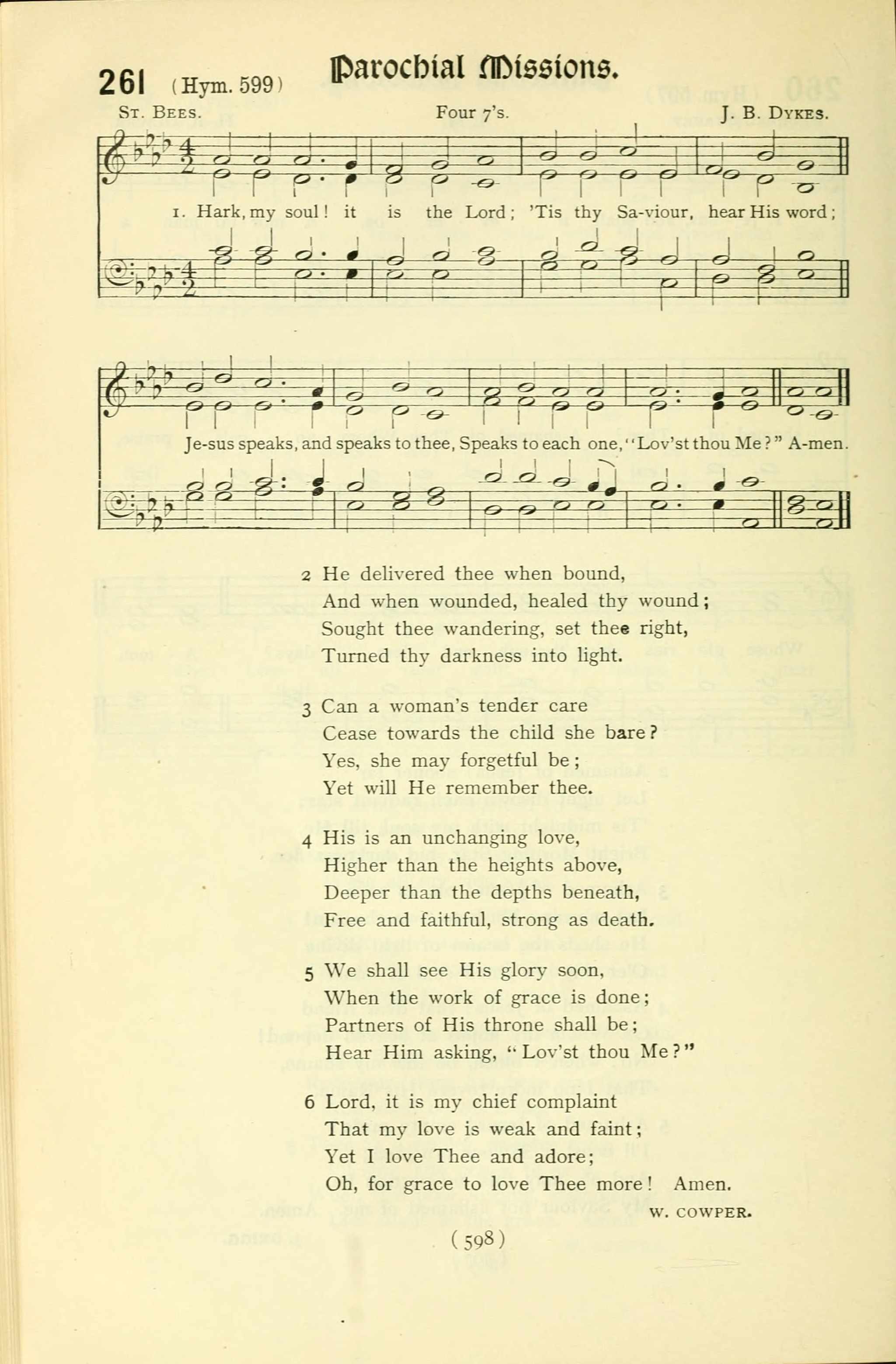 Hark, my soul! it is the Lord; 'Tis thy Saviour, hear His word;