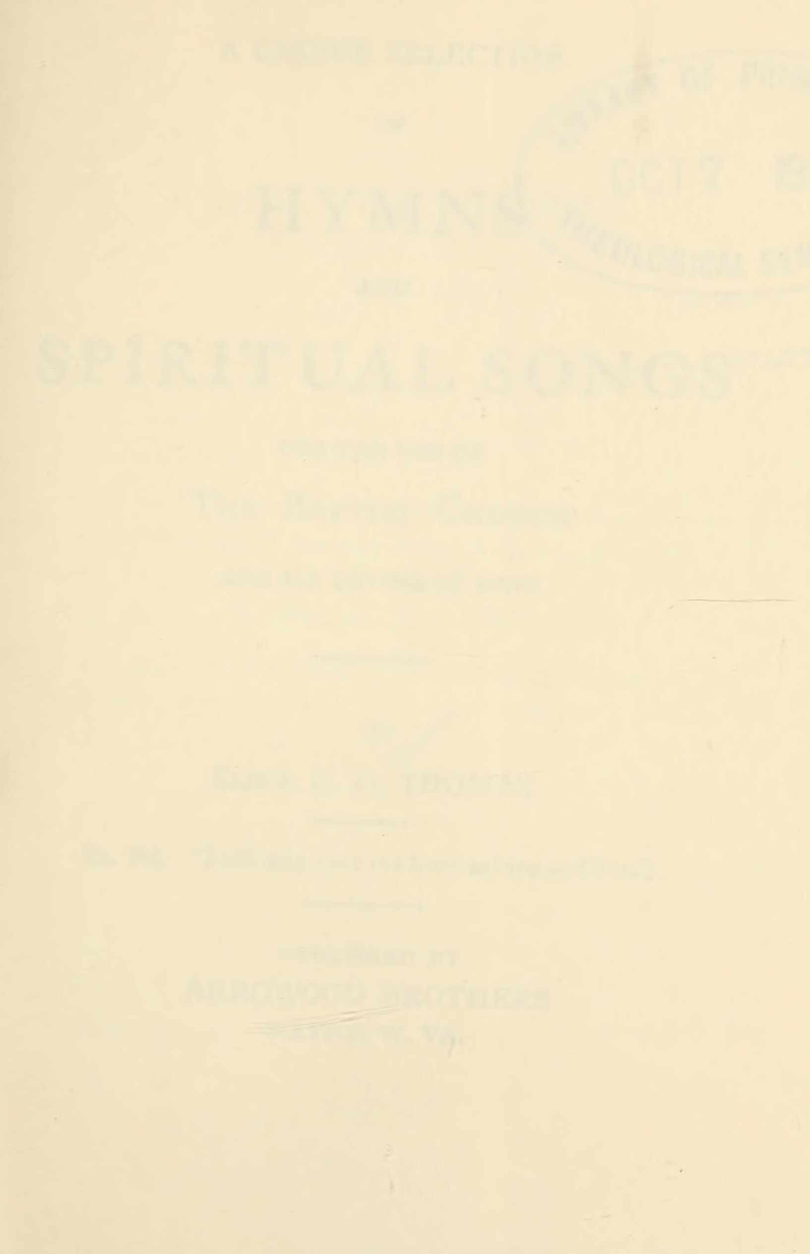 A Choice Selection of Hymns and Spiritual Songs for the use of the Baptist Church and all lovers of song