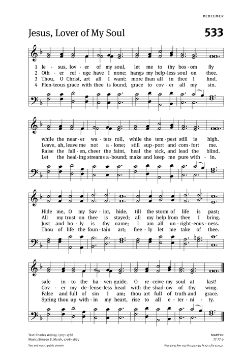 | Text: | Jesus, Lover of My Soul |