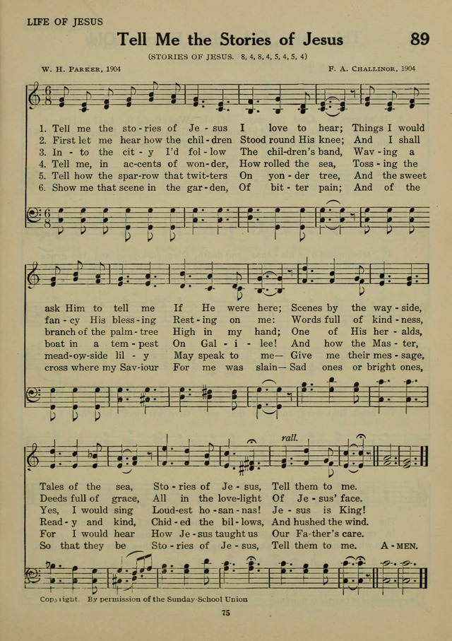 | Text: | Tell me the stories of Jesus, I love to hear |