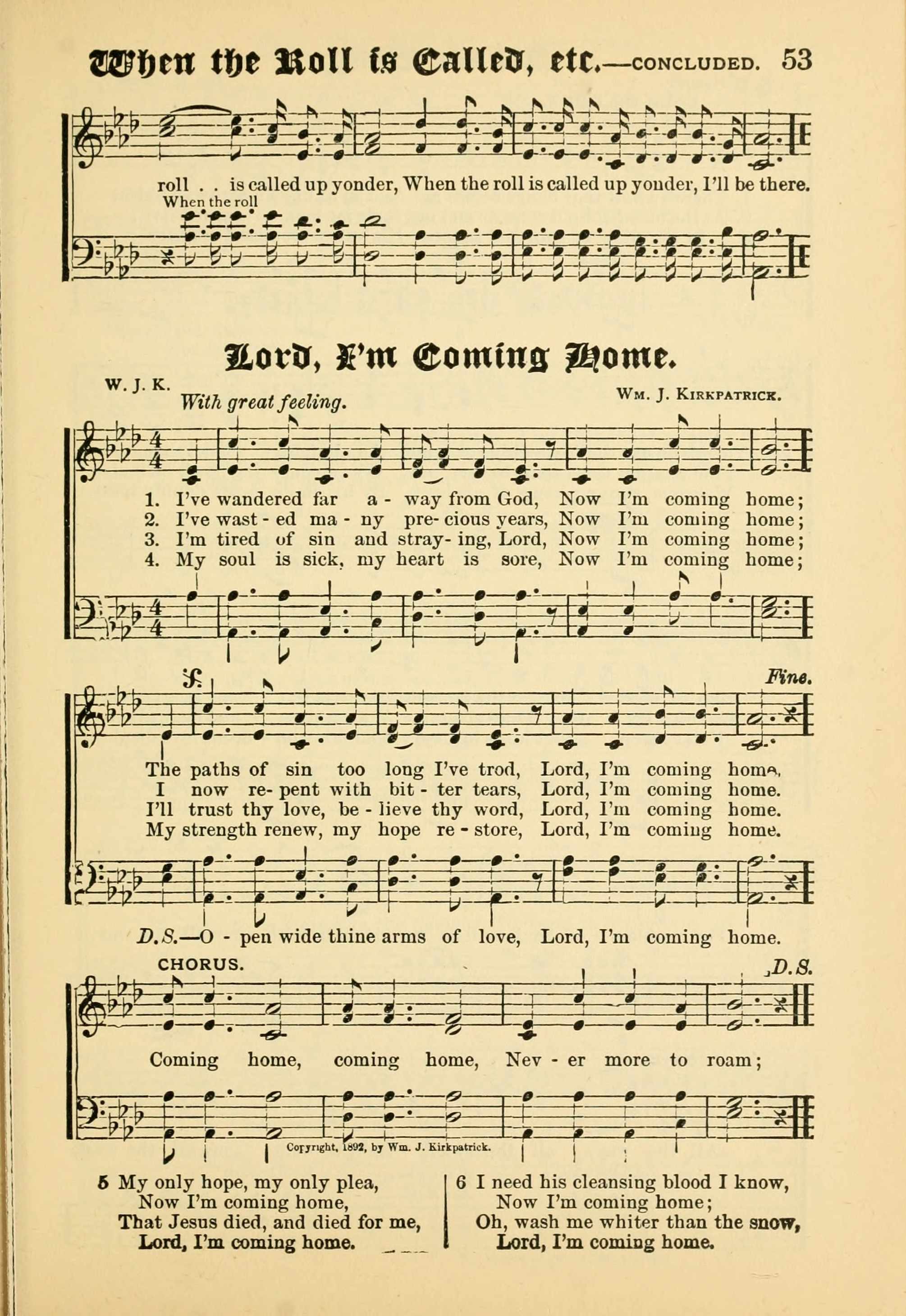Text: | When the Roll is Called Up Yonder |
