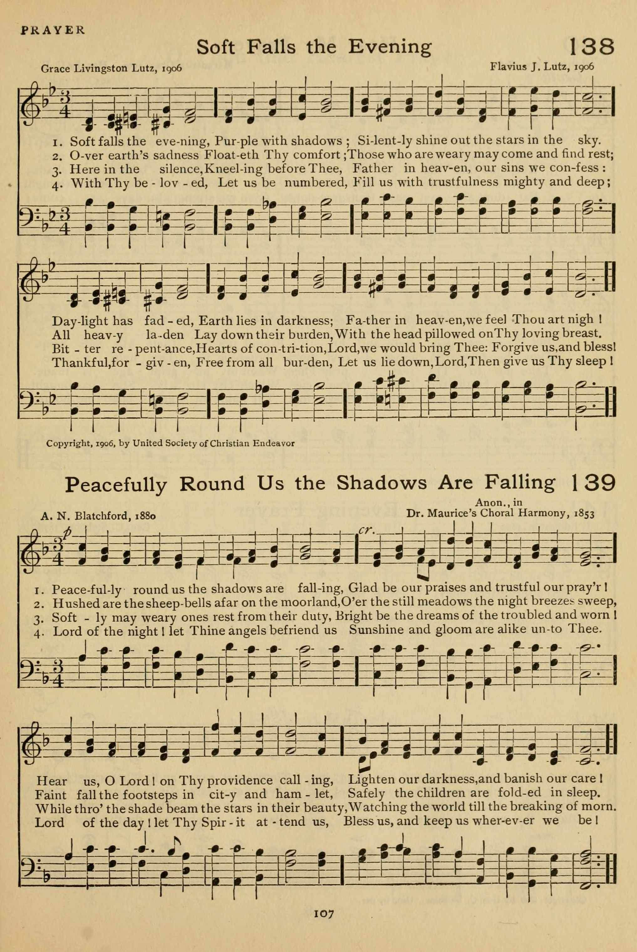 | Tune: | [Peacefully round us the shadows are falling] |
