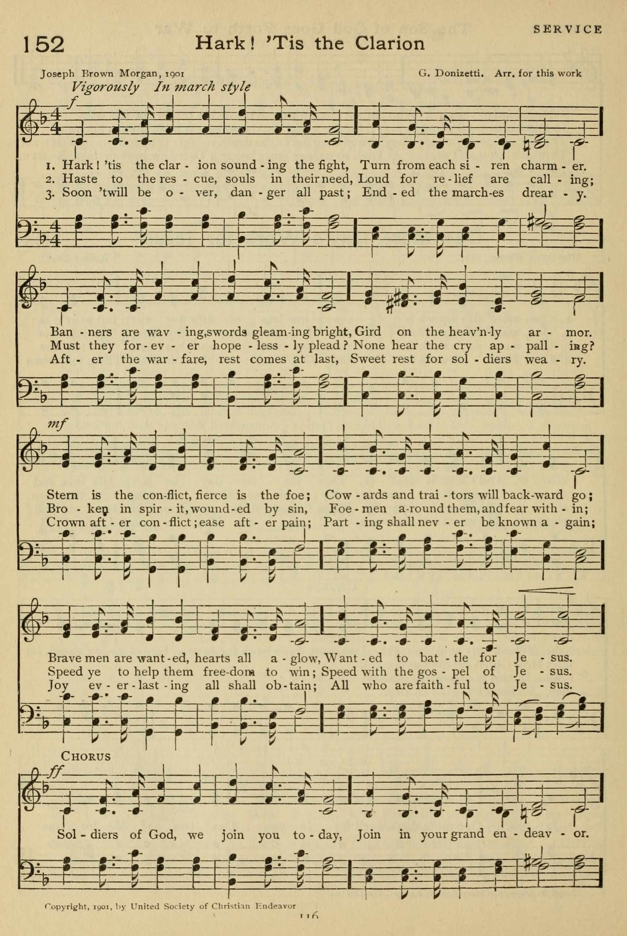 | Tune: | [Hark! ’tis the clarion sounding the fight] |