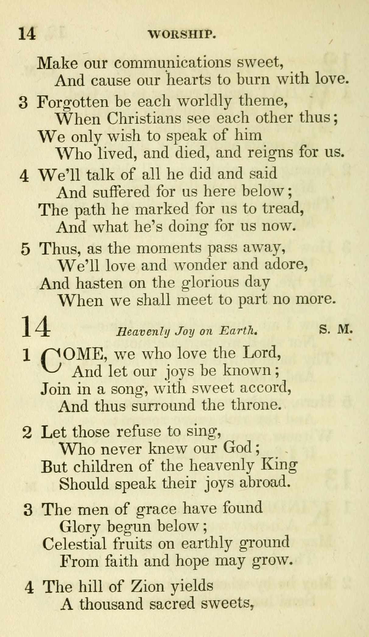 Come, ye [you] [we] that [who] love the Lord [Christ], And let your [our] joys