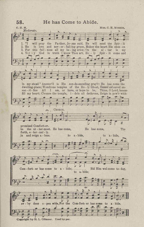 | Refrain First Line: | He has come to abide, He has come to abide |