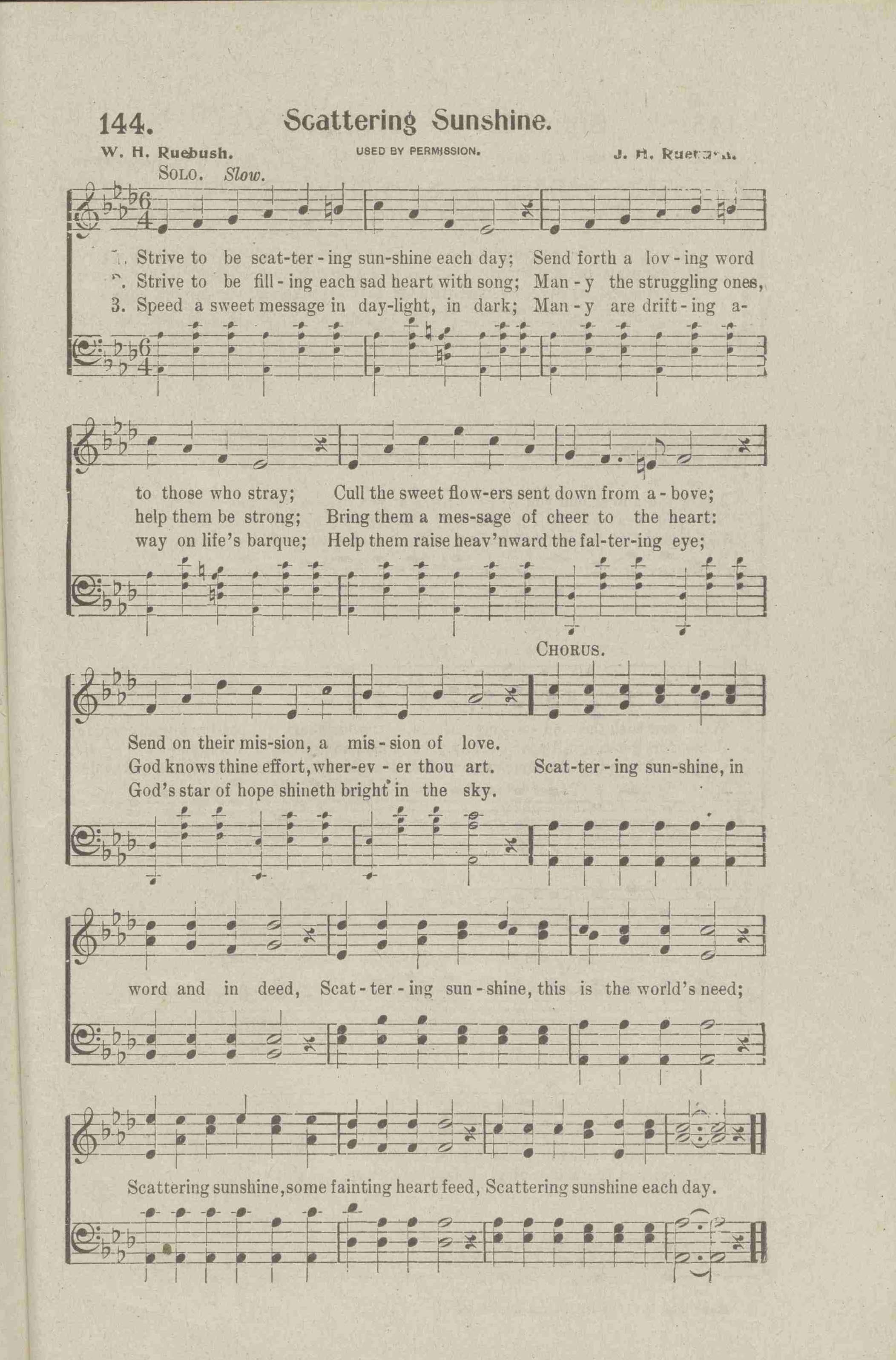 | Tune: | [Strive to be scattering sunshine each day] |
