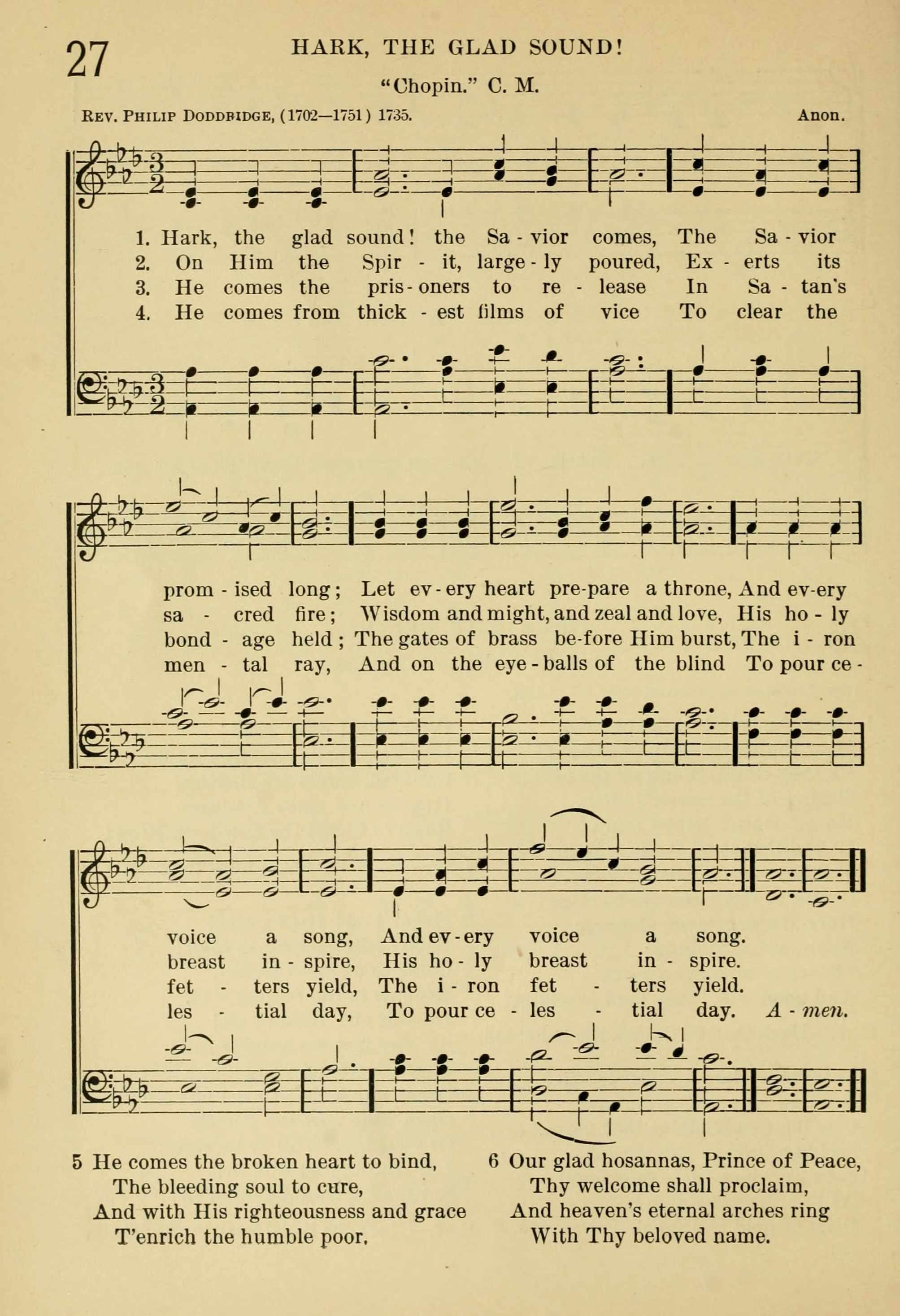 Hark, the glad sound! the Savior comes