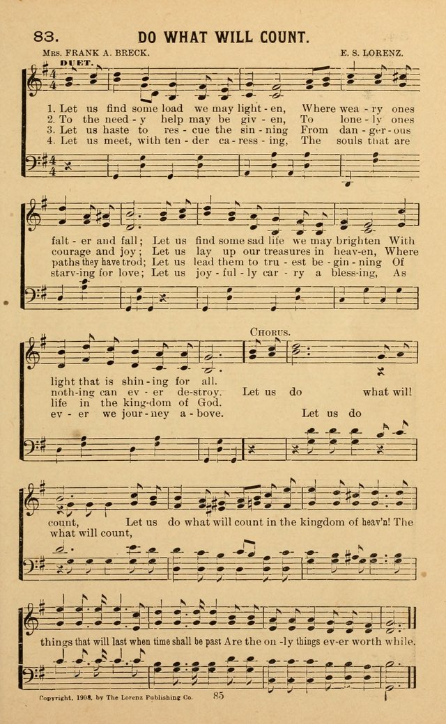 | Refrain First Line: | Let us do what will count |