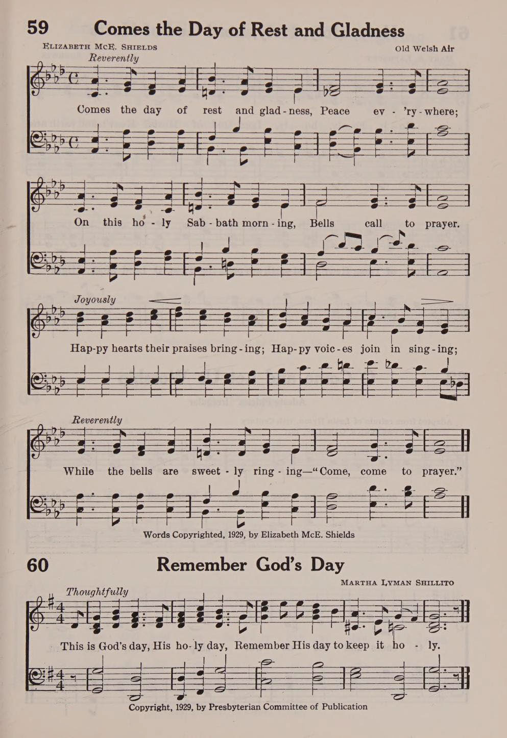[Comes the day of rest and gladness]