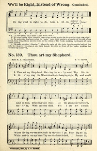 Author: Mrs. M. E. Thalheimer Hymnal: Triumphant Songs No.2 #139 (1889) Tune Title: [Thou art my Shepherd]