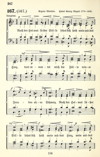 Author: MagenauHymnal: Liederlust und Psalter mit Anhang #126 (1884)First Line: Nach der Heimat süßer StilleRefrain First Line: Nach der Heimat süßer StilleLanguages: GermanTune Title: [Nach der Heimat süßer Stille]