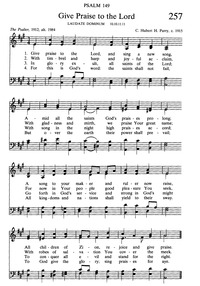 To God give the glory; sing praises for aye. Topics: Alleluias; Biblical Names and Places Israel; Biblical Names and Places Zion; Church Year All Saints' Day; Church Year Easter; Church Year Trinity Sunday; Elements of Worship Praise and Adoration; Endurance; God as Creator; God as King; God's Sovereignty; God's Triumph; God's Word; God's Justice; God's Name; God's People (flock, sheep); Grace; Hymns of Praise; Joy; Judgment; Justice; Musical Instruments; Occasional Services; Occasional Services; Rulers; Unity and Fellowship; Worship; Year A, Ordinary Time after Pentecost, September 4-10; Year C, All Saints' Day, November 1 Scripture: Psalm 149 Tune Title: LAUDATE DOMINUM