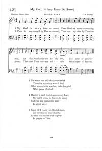 Author: Charlotte Elliott Hymnal: The New Christian Hymnal #224 (1929) Meter: 8.8.8.4 Lyrics: 1. My God, is any hour so sweet,