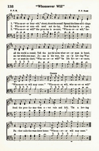 Author: P. P. B. Hymnal: Triumphant Service Songs #146 (1934) First Line: Whosoever heareth, shout, shout the sound Refrain First Line: Whosoever will, whosoever will, send the proclamation Topics: Invitation Tune Title: [Whosoever heareth, shout, shout the sound]