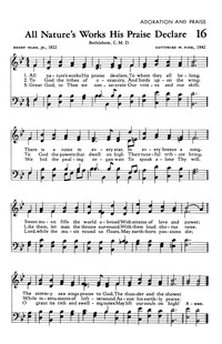 Author: Henry Ware, Jr. Hymnal: The Hymnal of The Evangelical United Brethren Church #16 (1957) Meter: 8.6.8.6 D Lyrics: 1 All nature’s works His praise declare,