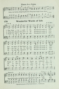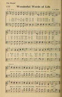 Author: P. P. B.Hymnal: The Redeemer's Praise #170 (1906)First Line: Sing them over again to meRefrain First Line: Beautiful words, wonderful words, wonderful words of lifeTopics: Atonement-SalvationTune Title: [Sing them over again to me]