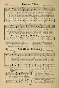 Author: Charlotte Elliott Hymnal: Tabernacle Hymns #269 (1931) First Line: Just as I am, without one plea Languages: English Tune Title: [Just as I am, without one plea]