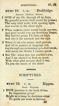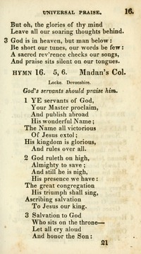 Hymnal: Village hymns for social worship, selected and original #16 (1840) Meter: 5.6 Topics: Universal Praise