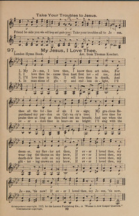 Hymnal: Women's New Gospel Quartets #97 (1925)First Line: My Jesus, I love thee, I know thou art mineLanguages: EnglishTune Title: [My Jesus, I love thee, I know thou art mine]