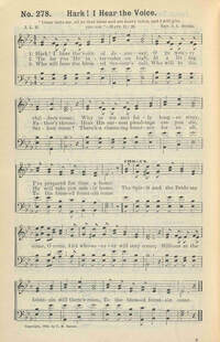 Author: J. L. B.Hymnal: Sweet Harmonies #278 (1903)First Line: Hark! I hear the voice of Jesus sayRefrain First Line: The Spirit and the Bride say comeLanguages: EnglishTune Title: [Hark! I hear the voice of Jesus say]