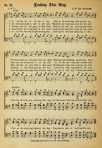 Author: J. W. V. Hymnal: New Songs of the Gospel (Nos. 1, 2, and 3 combined) #78 (1908) Topics: Future First Line: Over the river, faces I see Refrain First Line: Looking this way, yes, looking this way Languages: English Tune Title: [Over the river, faces I see]