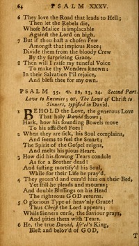Hymnal: The Psalms of David #P34c (1766) Topics: Afflicted removed by Prayer; Care of God over his Saints; Children instructed; Deliverance by prayer; Deliverance from deep distress; Exhortaions to Peace and Holiness; Fears and doubts suppressed; Instruction in piety; Peace and holiness encouraged; Praise for eminent Deliverance; Prayer and praise for deliverance; Prayer heard; Religious Education; Sin of Tongue; Tongue governed Lyrics: 1 I'll bless the Lord from Day to Day;