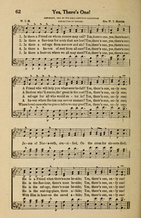 Author: W. T. M. Hymnal: Famous Gospel Hymns #62 (1907) First Line: Is there a Friend on whom sinners may call? Refrain First Line: Yes, there's one, only one! Languages: English Tune Title: [Is there a Friend on whom sinners may call?]