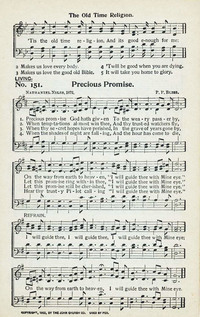 Author: Nathaniel Niles Hymnal: Times of Refreshing #113 (1896) First Line: Precious promise God hath given Refrain First Line: I will guide thee, I will guide thee Languages: English Tune Title: [Precious promise God hath given]