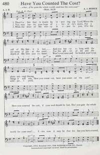 Author: A. J. H.Hymnal: Sacred Selections for the Church #480 (1990)First Line: There's a line that is drawn by rejecting our LordRefrain First Line: Have you counted the cost, if your soul should be lostLanguages: EnglishTune Title: [There's a line that is drawn by rejecting our Lord]