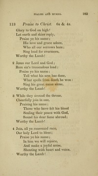 Hymnal: A Manual of Devotion for Soldiers and Sailors #113 (1847) Topics: Praise to Christ Languages: English